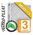 DESCRIPTION:Air Filters Incorporated™ Astro-Pleat™ MERV 13 16x25x1 seasonal (Up to 3 Months) Expanded Metal Backing pleated air filter utilizes electrostatically charged, 100% synthetic media which offers significantly higher particulate efficiency than regular poly/cotton media pleated filters, with little change in static pressure. MERV 13 filter media will not promote the growth of bacteria, mold, mildew, or fungi in normal operating environments, and has not been chemically treated. Astro-Pleat™ MERV 13 pleated filters are an ideal upgrade from standard disposable panel filters. These filters are designed to last up to 3 months.