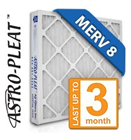 FEATURES:Air Filters Incorporated™ Astro-Pleat™ MERV 8 seasonal 1-Inch pleated air filters effectively reduce/remove pollen, dust, pet dander and dust mites for circulated indoor air. Filtering these airborne particles can help alleviate allergies and sinus irritation that can cause watery eyes, itchy throat, coughing, and sneezing. Additional benefits are extending the life of your Air Conditioning / Furnace system by allowing the system to work more efficiently and economically.