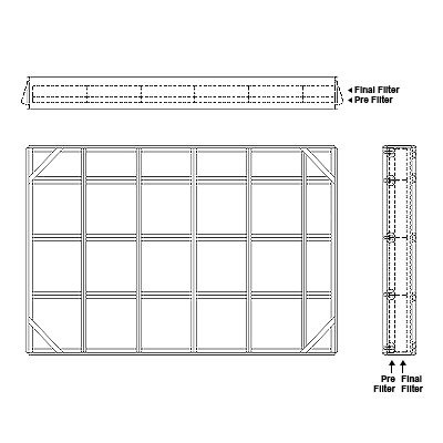 Aire-Loc Side Access Double Flat Bank Filter Housing 3-1/2 High 5-1/2 Wide 2-Inch Pre-Filter / 2-Inch Final-Filter