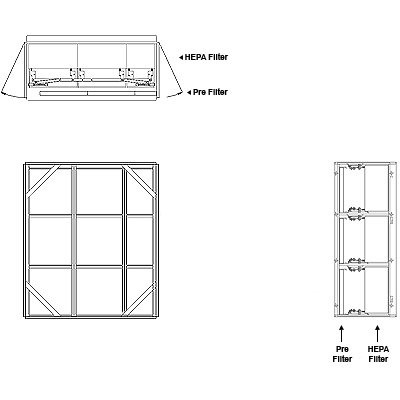 Aire-Loc Side Access HEPA Crank-Lock Filter Housing 3 High 2-1/2 Wide 2-Inch Pre-Filter 32-Inch Depth
