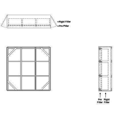 Aire-Loc Side Access Standard Filter Housing 3 High 3 Wide 2-Inch Pre-Filter 22-Inch Depth 1-Inch Header