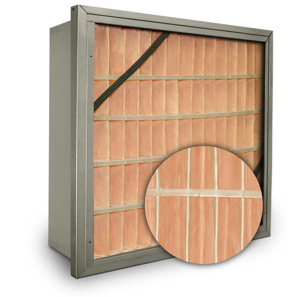 To ensure maximum rigidity and prevent any possible media pack shifting under high velocity conditions, diagonal, reinforcing struts are attached to the filter frame. The filter header option lets the Air Filters, Inc.™ Astro-Pak™ fit into any existing installation without modification.