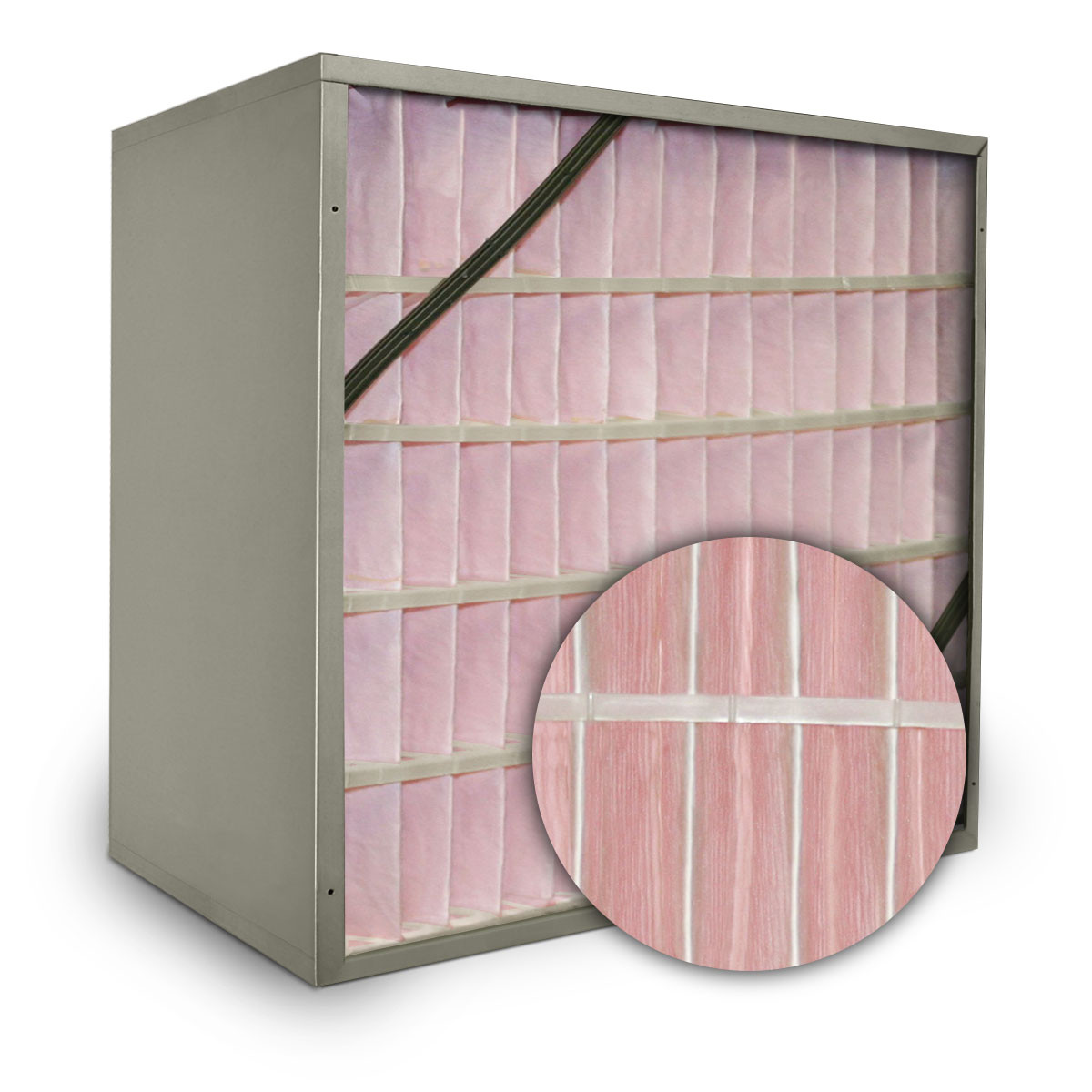 To ensure maximum rigidity and prevent any possible media pack shifting under high velocity conditions, diagonal, reinforcing struts are attached to the filter frame. The filter header option lets the Air Filters, Inc.™ Astro-Pak™ fit into any existing installation without modification.